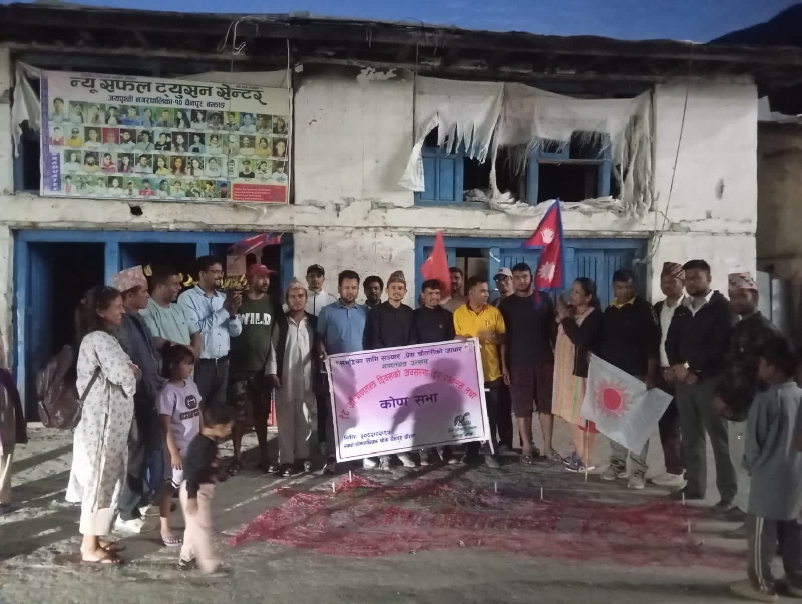बझाङ ।१८ ओैं गणतन्त्र दिवसको अवसरमा प्रेस चौतारी नेपाल बझाङ शाखाले बिहीबार साँझ दीप प्रज्वलन तथा कोणसभा कार्यक्रम सम्पन्न गरेको छ। कार्यक्रममा दीप प्रज्वलन गरेर गणतन्त्र मनाएकाे हाे । त्यसपछि वक्ताहरूले गणतन्त्र प्राप्तिका लागि सञ्चारकर्मीहरूको योगदान र गणतन्त्र प्राप्त पछि देश र नागरिकको अवस्था बारे आफ्नो धारणा व्यक्त गरेका थिए ।